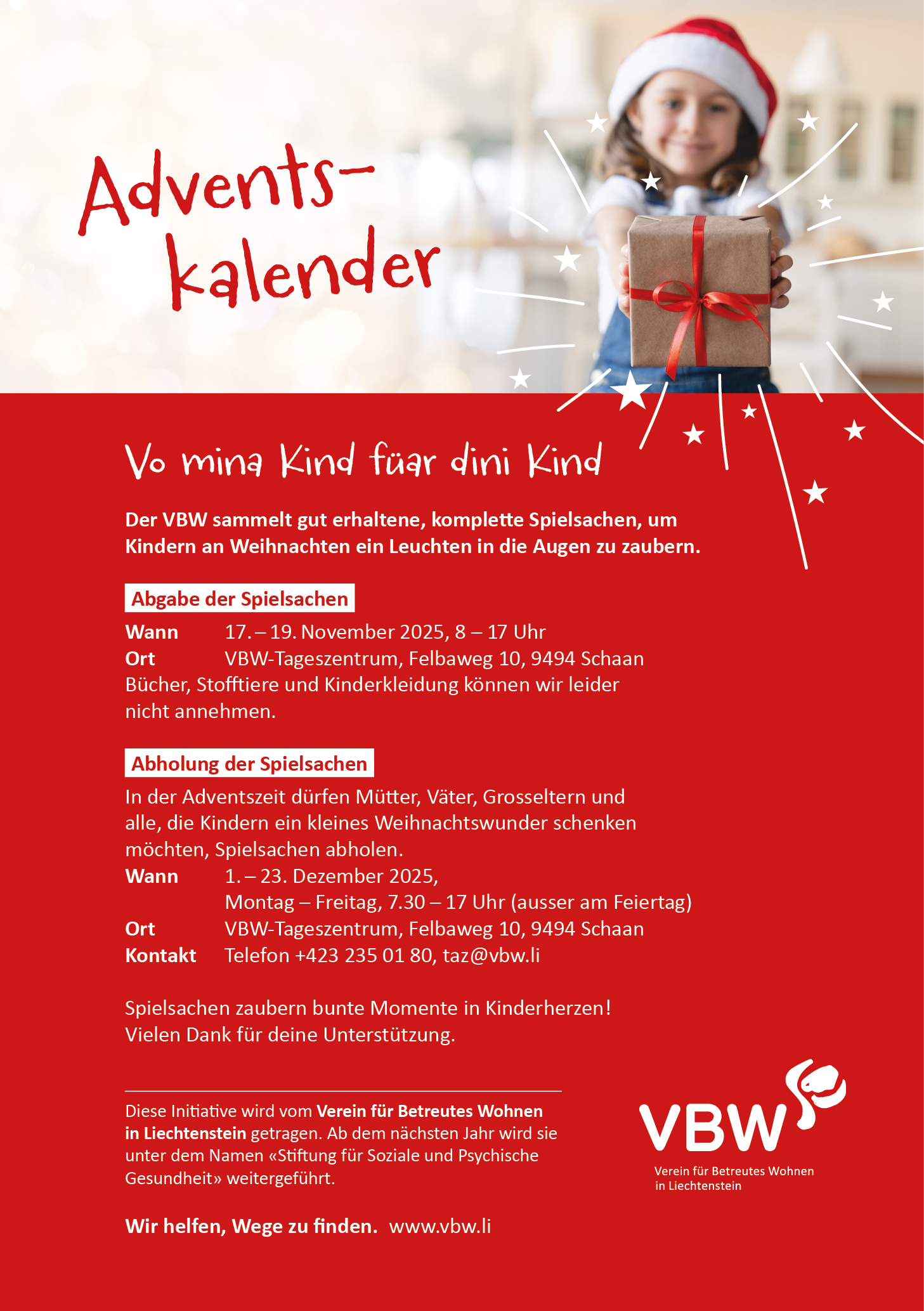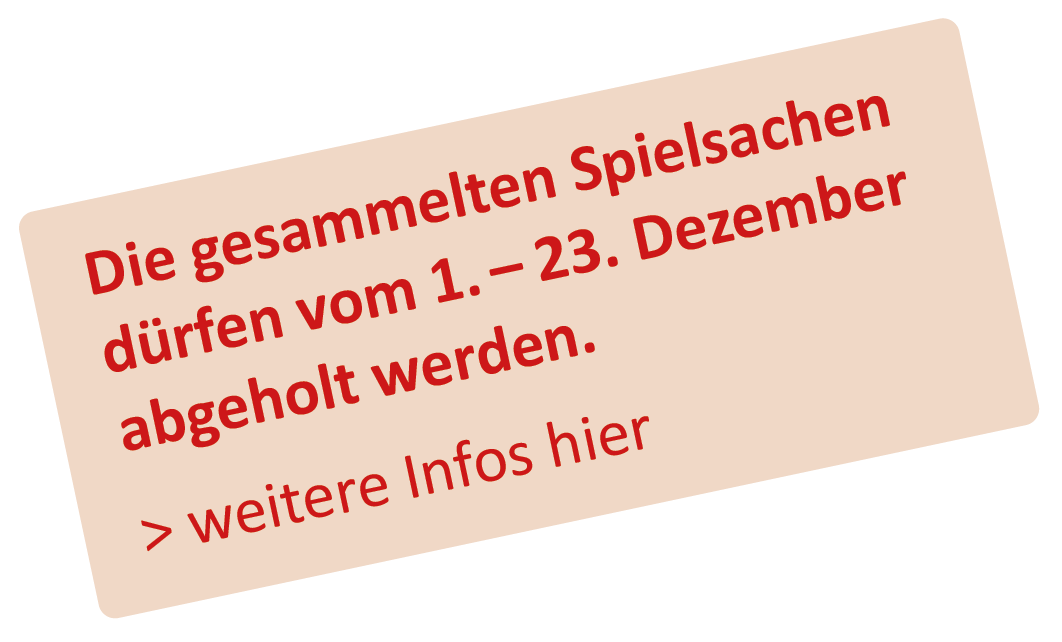 Spielsachen dürfen in der Adventszeit vom 1. – 23. Dezember abgeholt werden.